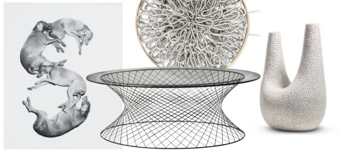 William Wegman 'Letters, Numbers, Punctuation', Jariet Oloyé Dimple Brooch, Mathias Bengtsson Spun Table, Pilar Wiley 'White Spotted Pony'